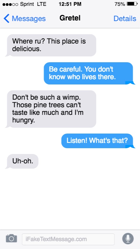 You could start with any one of those or invent a text conversation like this one between Hansel and Gretel.