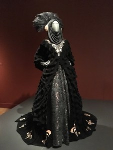 One of my favorite stories in the exhibit explained one of the drawings that was somewhat wrinkled. Apparently the artist was unhappy with the first version and crumpled the paper to throw it away. For some reason he or she (I’m so sorry, I don’t remember) decided to look at the drawing one more time. In smoothing out the paper, the artist realized that the texture of the wrinkled paper added interest to the design and continued the effort. The result was an amazing gown with spider web lace adding texture to the middle.